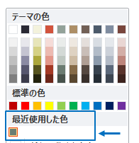 「最近使用した色」として色が登録される(テーマの色、ではないのでテーマに左右されない)
