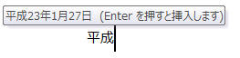 「平成」や「西暦4ケタ/」を入力すると、今日の日付がポップヒントで表示され、ENTERキーを押すだけで入力できます。