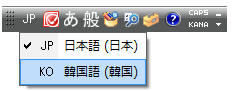 言語バーの「JP」をクリックし、言語を「KO