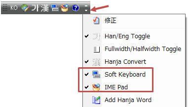 これで韓国語をキーボード入力できます。キー配置が知りたい、クリック入力したい場合は「Soft