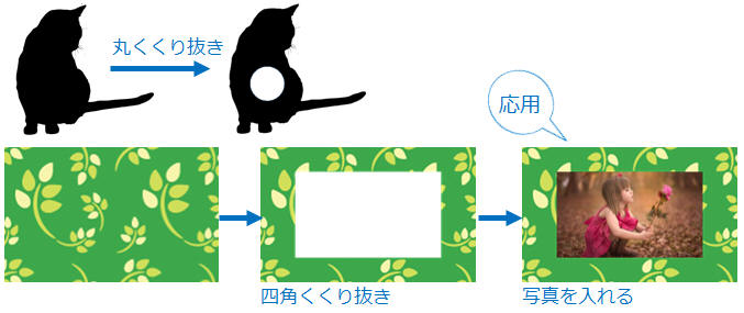くり抜き部分は何もない状態なので、通常のテキスト文字や画像に被せることもできます。