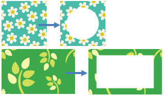 同じ色のピクセルを透過するので画像に図形を被せて図に変換後、透過すると自由な形で透過できます(「複数箇所を透過」を参照)周囲の線が残るので枠線なし、塗りつぶし色も薄い方が綺麗に透過されます。