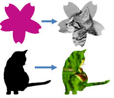 ↓ 画像を透過し、他の写真をはめ込んだ例(★透過すると他の色を指定できる)