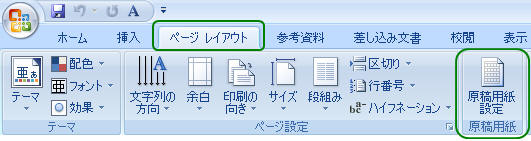 ※ 「ページレイアウト」タブに「原稿用紙設定」ボタンがない場合はこちら