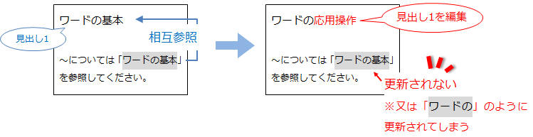 元の文字列が変更されても相互参照が更新されないことがあります。