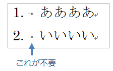 段落番号の後のタブ(→)を削除したいというご質問をいただきました。番号の後ろのタブは簡単に削除可能です。
