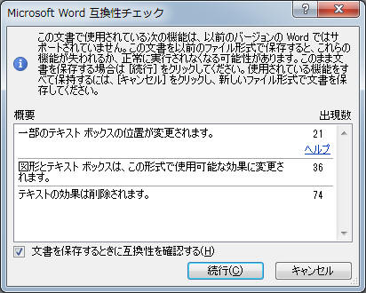 Word2007互換のチェックをし互換性がない書式を確認(2007互換の文書は作成不可)◎互換モードにせずチェックのみ可能!