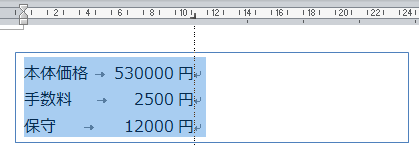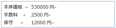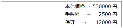 右揃えにしたい箇所(例で言えば金額)にTabを挿入する