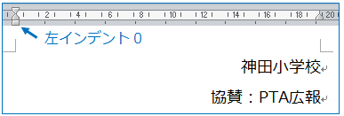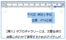 範囲選択し、右インデントを動かす(余白を動かさないよう注意!) または…