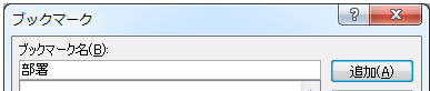「挿入」タブ−「ブックマーク」をクリックし、任意のブックマーク名を入力して「追加」をクリック
