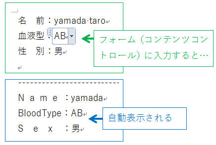 ドロップダウンリストで選択した値を表示したい場所で、Ctrl+F9キーを押す