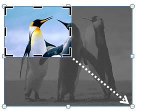 写真の位置を変えるには「書式」タブ−「トリミング▼」をクリックして写真をポイントし、マウスポインタがの形になったらドラッグ