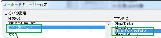 分類を「すべてのコマンド」にし、コマンドで「ShrinkFontOnePoint」を選択