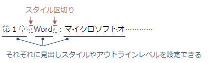 ★スタイル区切りは段落を区切ることができる機能です。段落内の各文字列に異なる見出しスタイルやアウトラインレベルを設定できます。