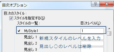 「オプション」をクリックし作成スタイルのレベルを入力