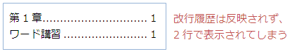 改行の削除履歴がついた段落を参照先とすると、目次には削除履歴が反映されない為に2行で表示されてしまいます。
