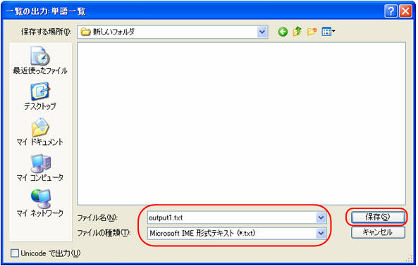 任意の場所とファイル名を入力し、テキスト形式で保存