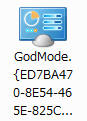 フォルダの名前を「GodMode.{ED7BA470-8E54-465E-825C-99712043E01C}」とする ▼ フォルダのアイコンが変更されます。