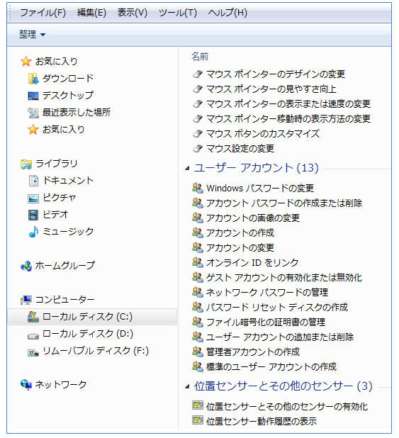 フォルダをダブルクリックして開く ▼ コンパネから行える項目が一覧で表示されます。ここから操作することが可能です。