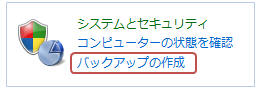 コントロールパネル−「システムとセキュリティ」−「バックアップの作成」をクリック(又はコンパネ