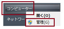 「スタート」−「コンピュータ」を右クリックし「管理」をクリック