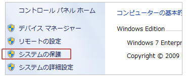 左ウィンドウで「システムの保護」をクリック