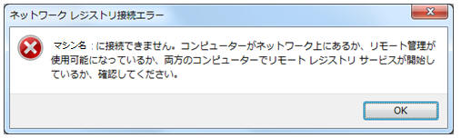 ネットワーク上のコンピュータのレジストリを操作しようとすると「ネットワークレジストリ接続エラー」が発生することがあります。 ネットワークレジストリを操作するには、接続先のコンピュータでリモートレジストリサービスを開始する必要があります。