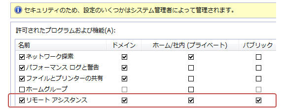 Windowsファイアウォールが有効(かつリモートアシスタンスを例外許可していない)