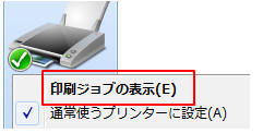 既定のプリンターを右クリックし「印刷ジョブの表示」をクリック