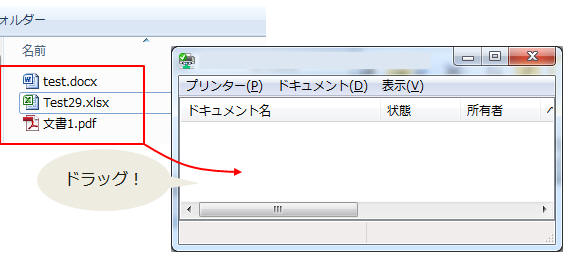 フォルダ内のファイルを複数選択し(CTRL+Aキーで全選択、またはCtrlキーを押しながら1つずつクリック)印刷ジョブ にまとめてドラッグする