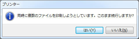 「同時に複数のファイルを印刷しようとしています。このまま続行しますか?」に対し「はい」をクリック