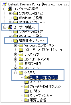 「ユーザーの構成」−「管理用テンプレート」−「システム」−「ユーザープロファイル」をクリック