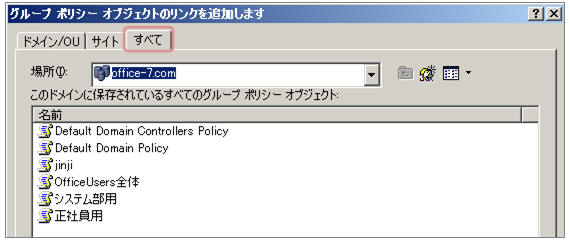 ★ GPOを追加する場合、「すべて」タブをクリックすると既存の全てのGPOが表示されます。