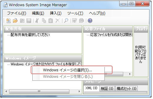 Windowsイメージの「Windowsイメージまたはカタログファイルを指定してください。」を右クリックし「Windowsイメージの選択」をクリック