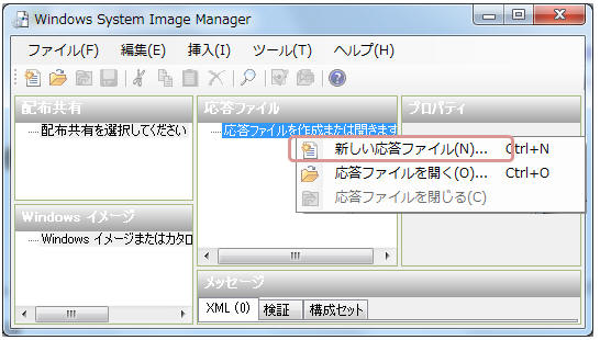 「応答ファイル」内の最上位(応答ファイルを作成または開きます)を右クリックし「新しい応答ファイル」をクリック