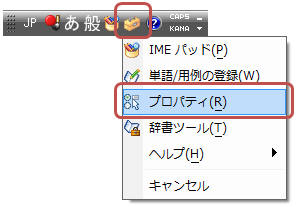 言語バーの「ツール」ボタンから「プロパティ」をクリック