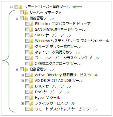 →「スタート」メニュー−「管理ツール」をクリックすると、チェックを入れたサーバー管理機能が表示されます。(「Active Directoryユーザーとコンピュータ」や「グループポリシーの管理」など) ★ 「管理ツール」が表示されない方は「Windows7 スタートメニューに「管理ツール」を表示させるには」を参照してください。