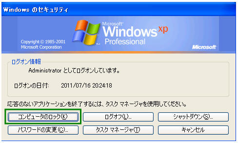 CTRL+ALT+DELキーを押して「コンピュータのロック」をクリック