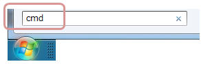 「スタート」−「プログラムとファイルの検索」ボックスに「cmd」と入力し「Enter」キーを押します。
