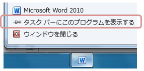 タスクバーに表示されたアイコンを右クリックし「タスクバーにこのプログラムを表示する」をクリック