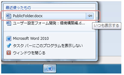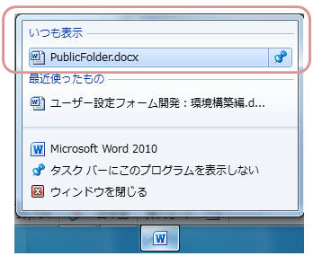Windows7 :タスクバーに 頻繁に使用するプログラムやファイルを配置する(ジャンプリストの登録) |