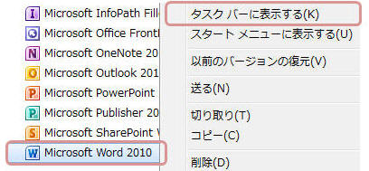 「タスクバーに表示する」と表示されたらマウスから手を放す ■ 頻繁に使うファイルを追加する場合