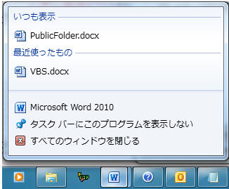 適当な既存ファイルを開き、ジャンプリストに「最近使ったもの」が表示されるかを確認する