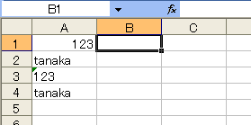 「'」を削除するには次のようにします。なぜ削除できるかを解説すると長くなりますので、とりあえずやり方だけ覚えてください。ここではセルA1に入力した「'tanaka」から「'」を削除しますが、同じ手順で複数のセルを同時に処理することも可能です。