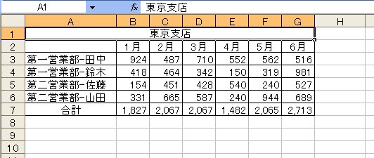 たとえば、次のように2つの表を作ったとします。仮に「支店別売上」をSheet1に作り、「東京支店」をSheet2に作ったとしましょう。