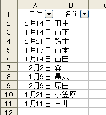 1月のデータだけを絞り込むにはどうしたらいいでしょう。ちなみに、こうした質問は、ExcelのQ&A掲示板などで定番ですね。