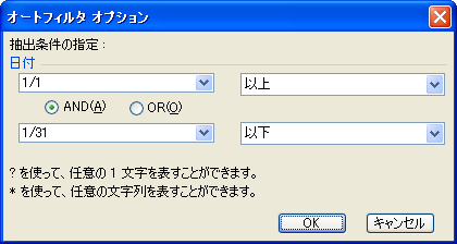 かつ1月31日以下」という意味ですから[AND]をオンにするのを忘れないでくださいね。なお、ダイアログボックスで指定した「1/1」と「1/31」は、どちらも年を省略していますので"
