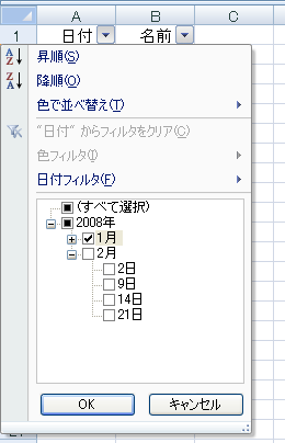ちなみに、Excel 2007のオートフィルタでは、こうした"月ごと"の絞り込みが簡単にできるようになりました。