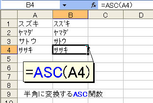 非常に便利なASC関数とJIS関数ですが、ひとつ特徴があります。それは、両関数が変換するのは