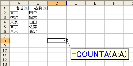 いま、A列に何個のデータが入力されているかは、COUNTA関数でわかります。